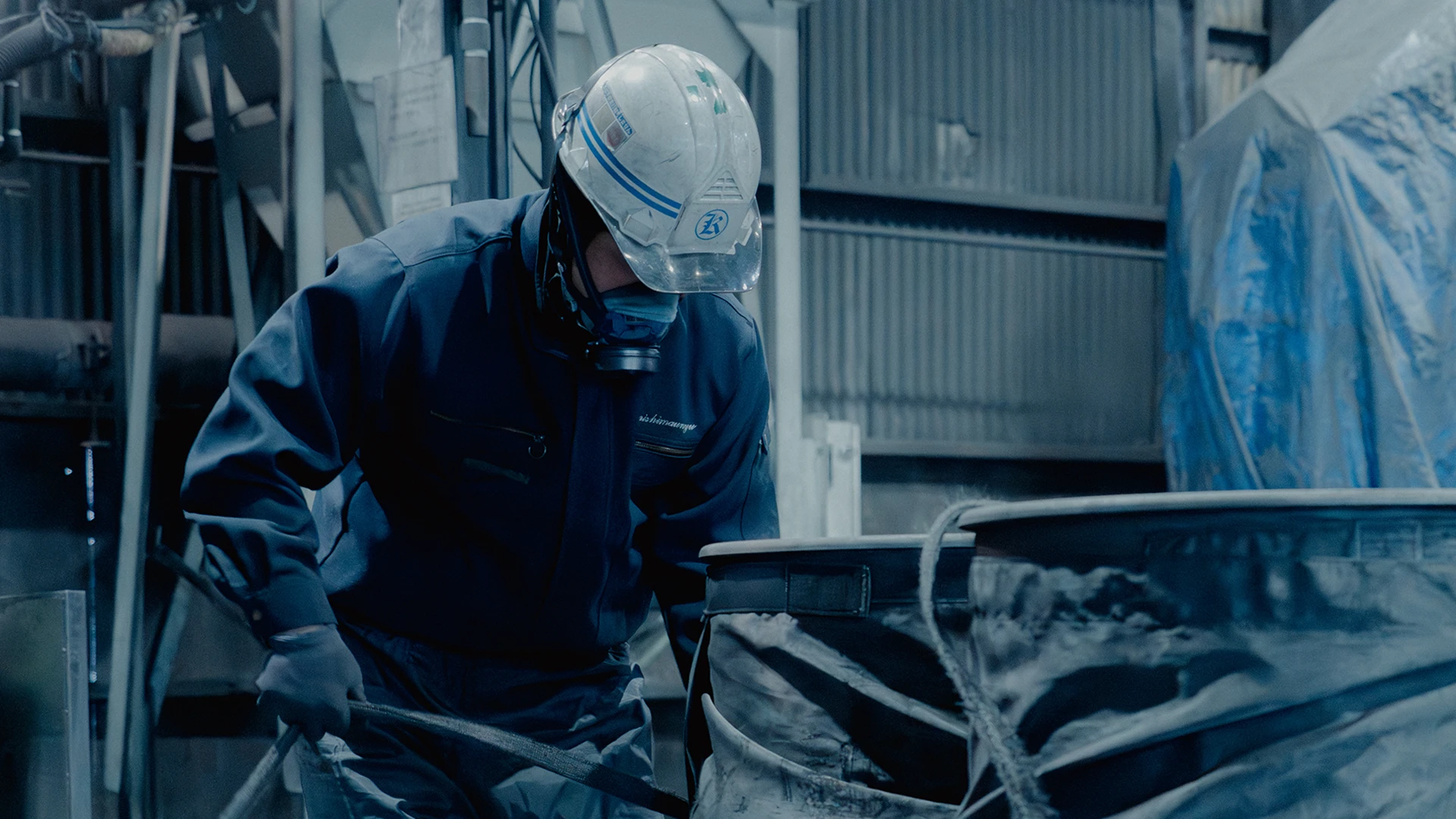 リチウムイオン電池素材の製造補助や、製品の包装・積込に加え、工場敷地内の環境美化・除雪作業などの業務も担っています。